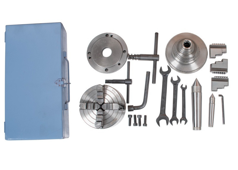 - uchwyt 4-szczękowy Ø 125 mm (odz. ust. szczęk) + kołnierz sprzęgający