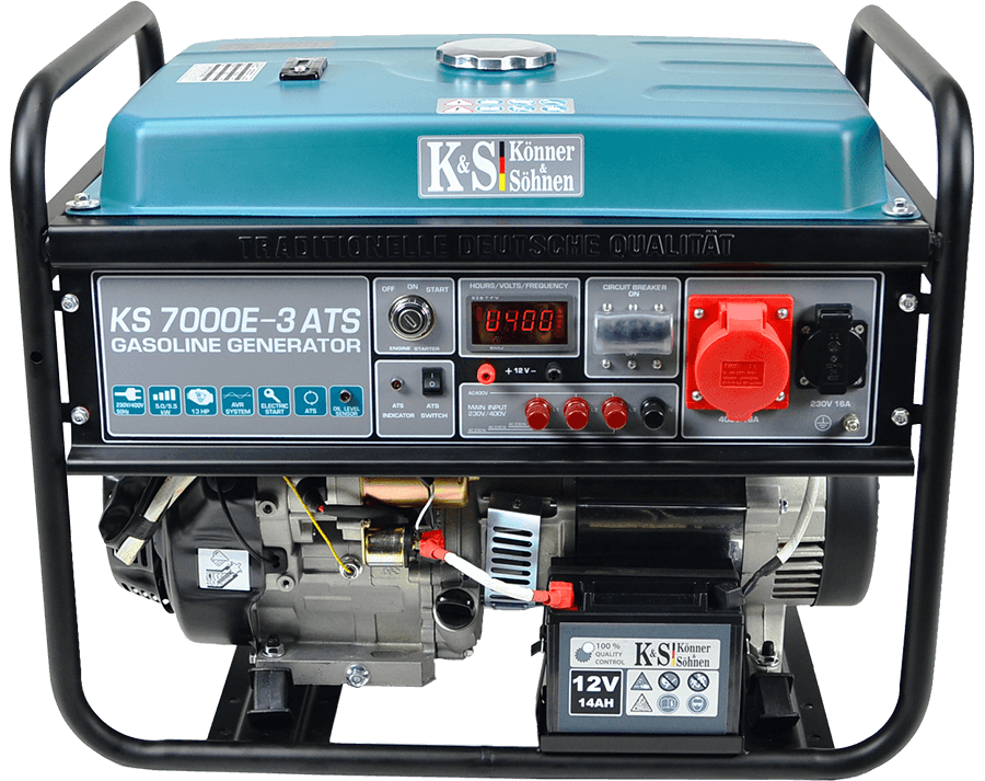 - wbudowany system ATS (automatyczne załączenie rezerwy) pozwala na wpięcie agregatu do instalacji domowej / warsztatowej