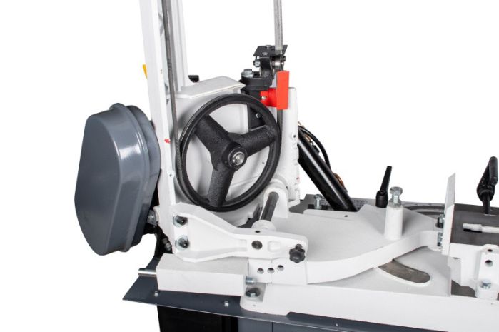 - cięcie materiału pod kątem jest zapewnione przez obracające się skrętne ramię piły
