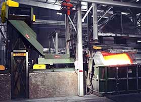 Podajnik do złomu z bezpośrednim zasilaniem pieca.