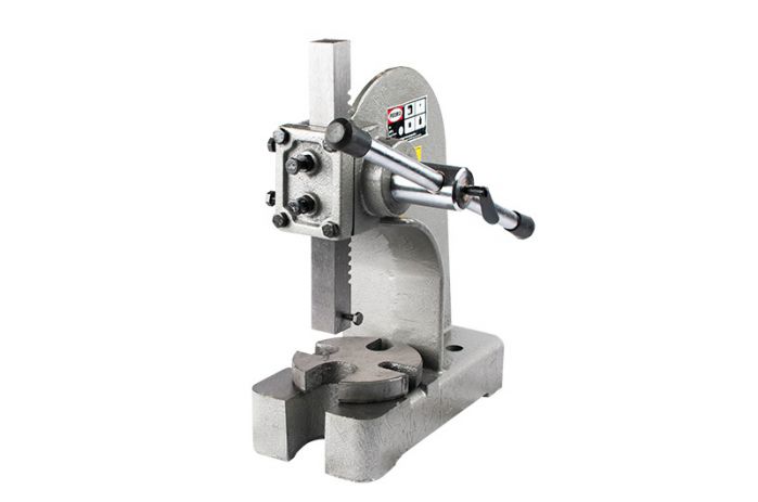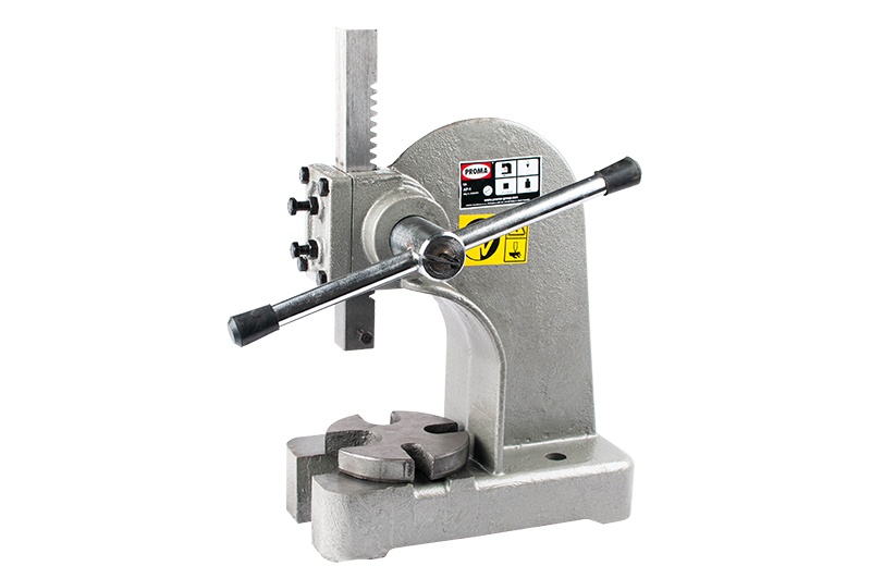 - zbudowana jest z żeliwnego korpusu, stołu i dwóch zębatych elementów, które poprzez dźwignię zapewniają siłę nacisku prasy