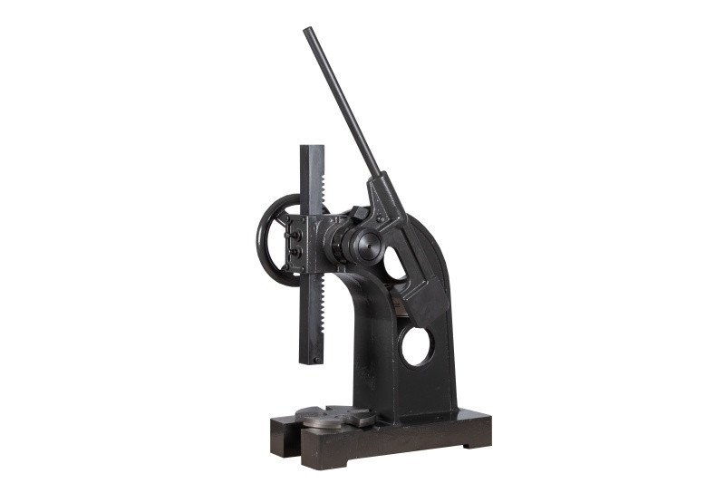- zbudowana jest z żeliwnego korpusu, stołu i dwóch zębatych elementów, które poprzez dźwignię z grzechotką zapewniają siłę nacisku prasy