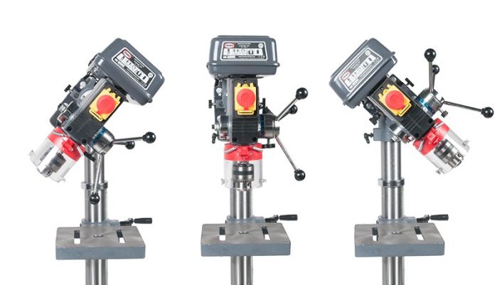 - całą górną część urządzenia można pochylać, co umożliwia wiercenie otworów pod różnym kątem