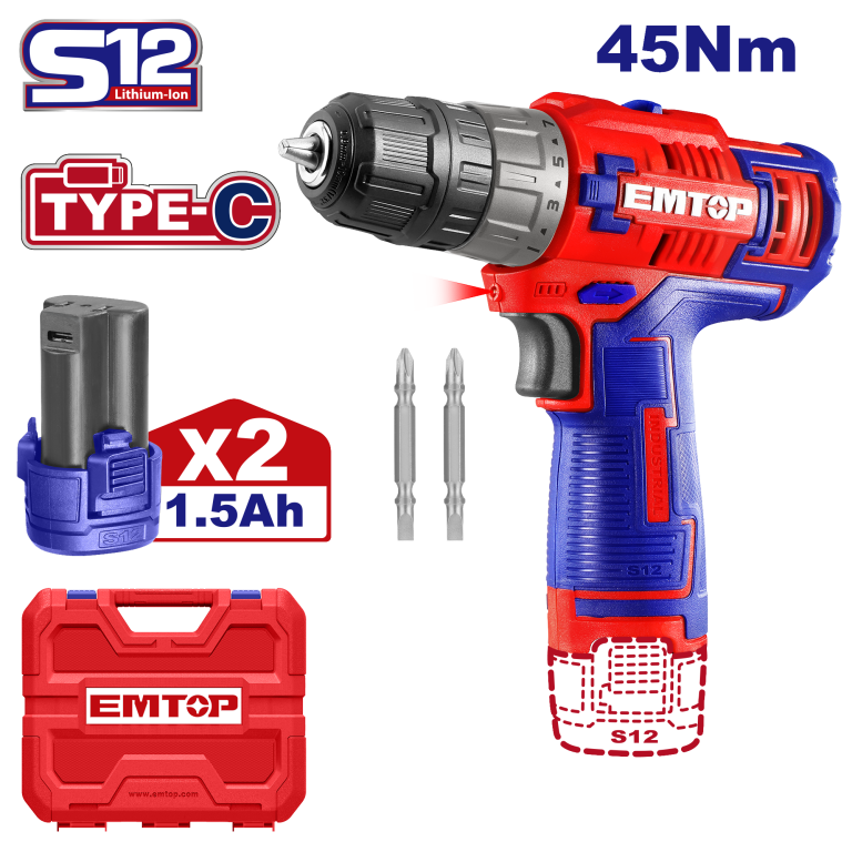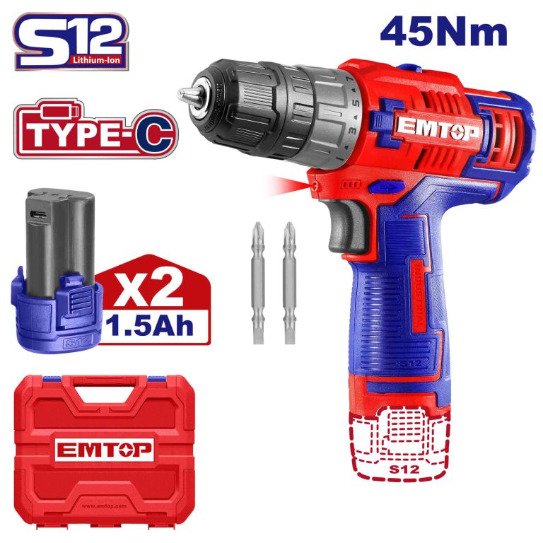 Wiertarko-wkrętarka akumulatorowa 12V S12 USB-C 45Nm zestaw