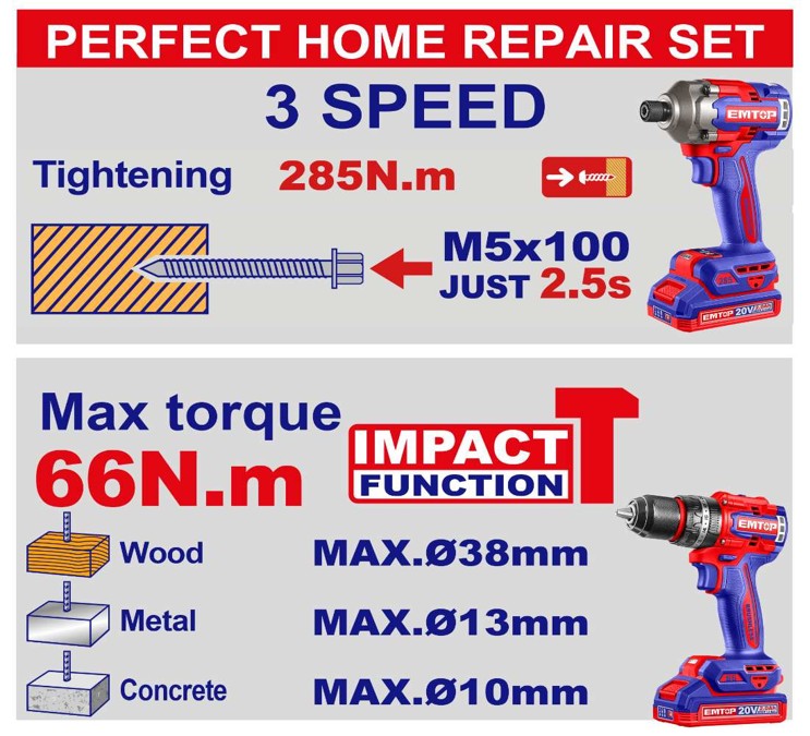 Zestaw narzędzi akumulatorowych P20S 20V COMBO2