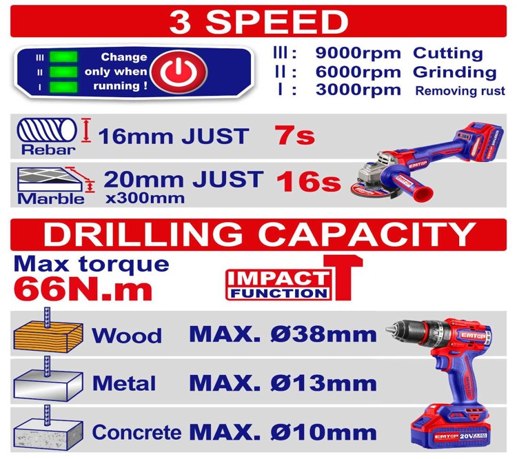 - bezszczotkowa aku wiertarka udarowa 66Nm (ECIDL206681)